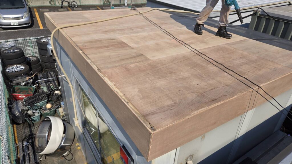 夏の暑さ対策を行いました。そして今回は、奥の事務所の雨漏り対策です。