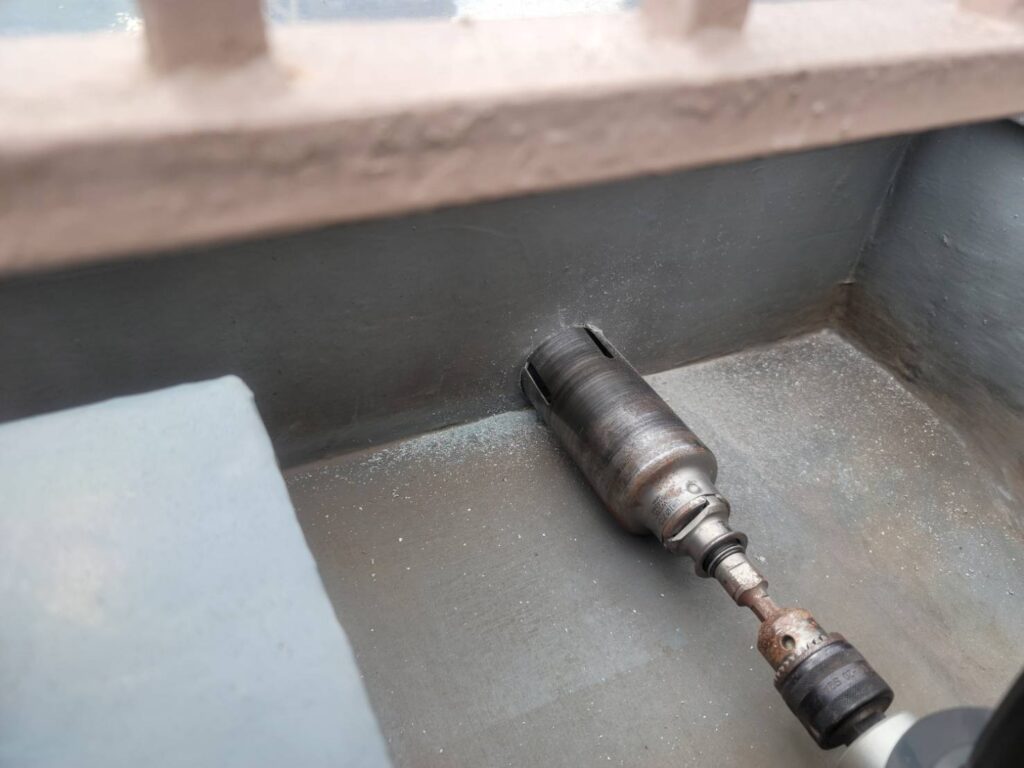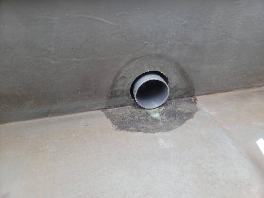 そこで当社は、既存のドレンの機能低下を補うため、屋上の壁に新しく穴を開け、