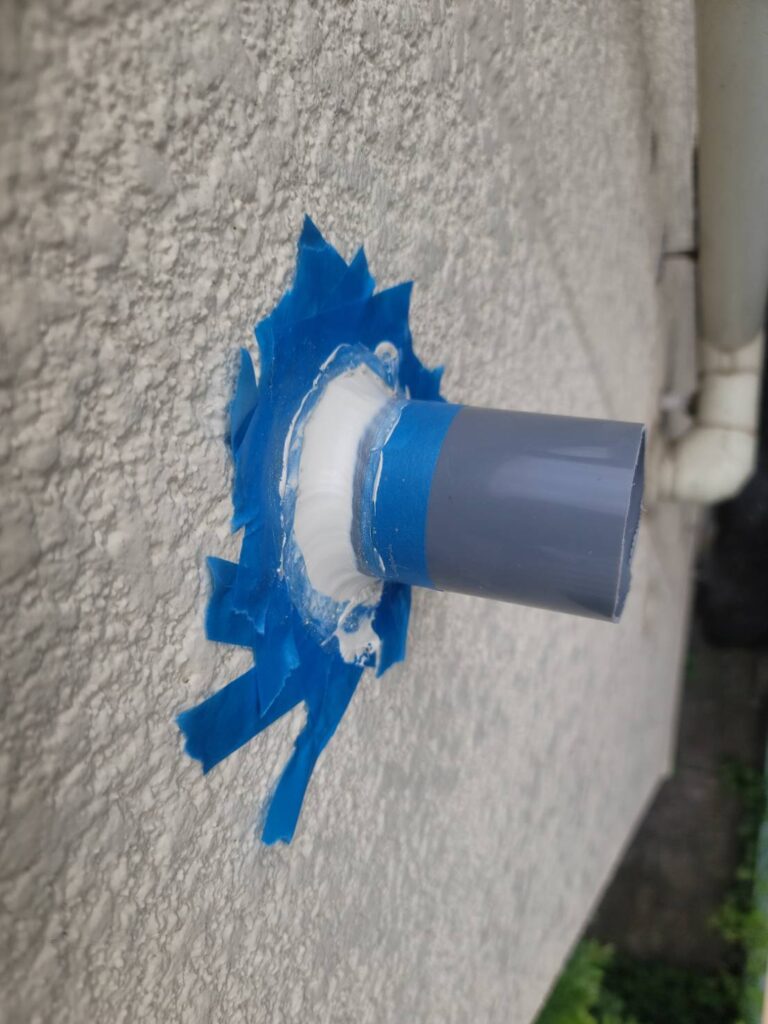 オーバーフロー管(緊急排水口)を取り付ける工事を行いました。