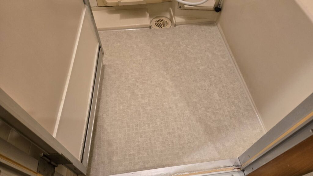 入居者様の安全性や美観を考慮し、浴室用床シート「バスナシート(リアルデザイン)」の施工を行いました。