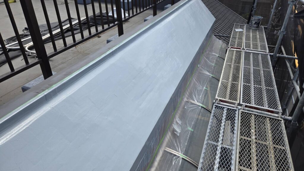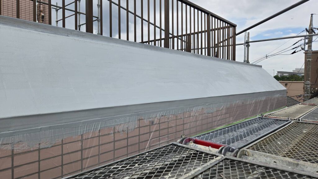 さらに、その強固な塗膜を剥がすのが難しいため、上からウレタン塗膜防水を施工しました。