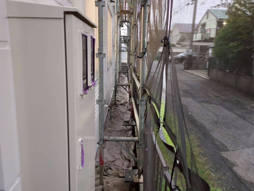 本工事では、足場組みから塗装、補修まで一貫して当社が請け負いました。
