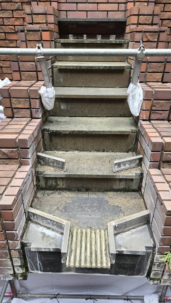 現地調査に伺った際には、水漏れを防ぐためにポンプが止められ、滝が枯れてしまっている寂しい状態でした。